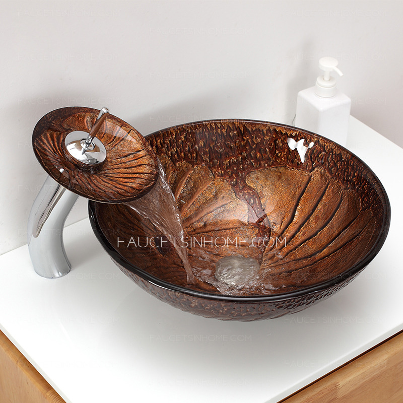 Brown Glass Round Vessel Sinks Swirl...